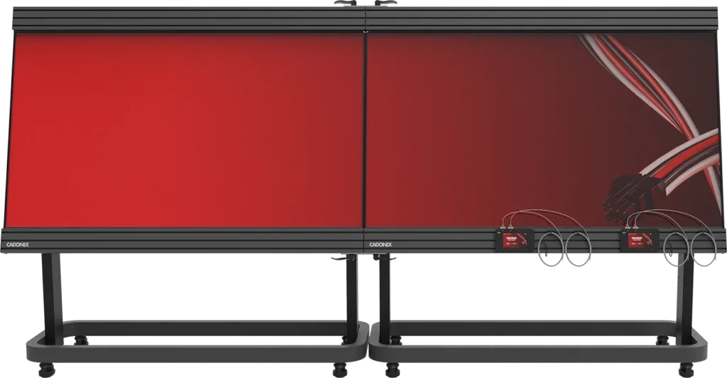 Rather than selecting off-the-shelf materials, the team created purpose-built hardware optimized for manufacturing environments. This includes a custom stand with adjustable heights, industrial casters, integrated controller mounting rails, and a durable acrylic display surface that allows visibility to wire harness build information while protecting the display in fast paced manufacturing environments. Every component selection, from display technology to caster specifications, was made with deployment speed, durability, and user experience in mind, ensuring manufacturers could unpack and start producing in hours.